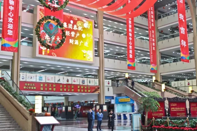 圖為浪莎員工正在手忙腳亂的貼剛剛從市委書記手中領到的春聯: