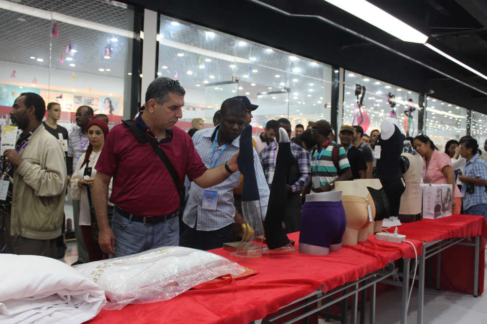 在浪莎智能美體事業部產品展示區前,所有參觀考察人員在講解員的認真講解下,了解了產品的材質和功能特點,并對浪莎智能美體內衣、通絡理療襪等產品很是認可,對這些健康功能性產品不由的稱贊叫好。