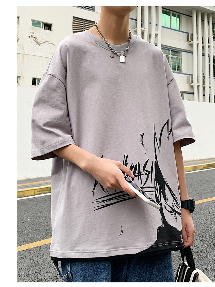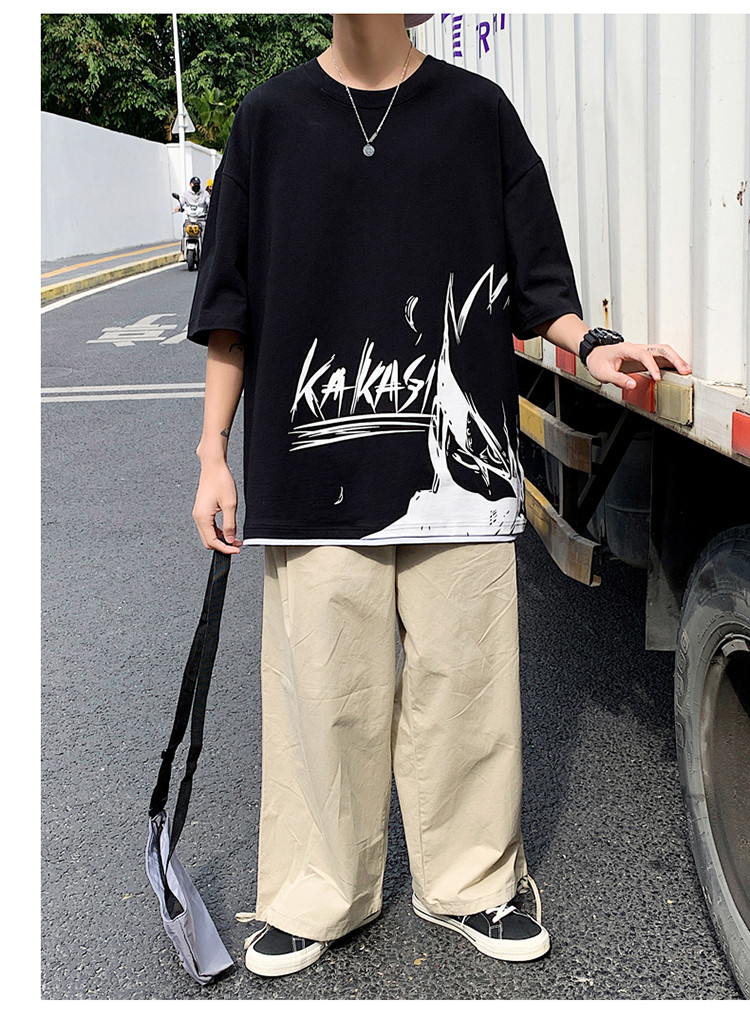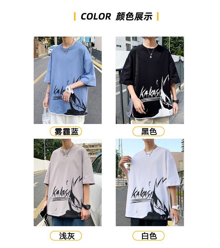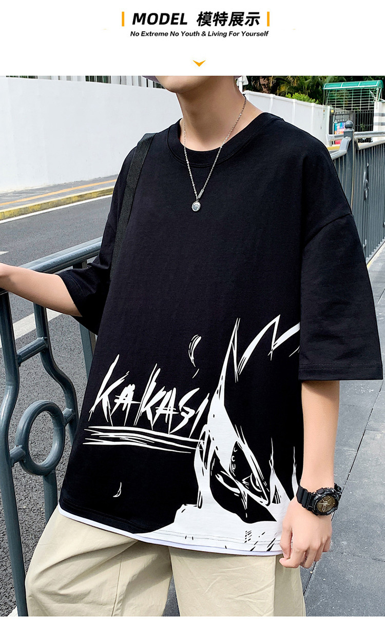 純棉舒適】夏季新款男士圓領短袖時尚火影印花半袖T恤