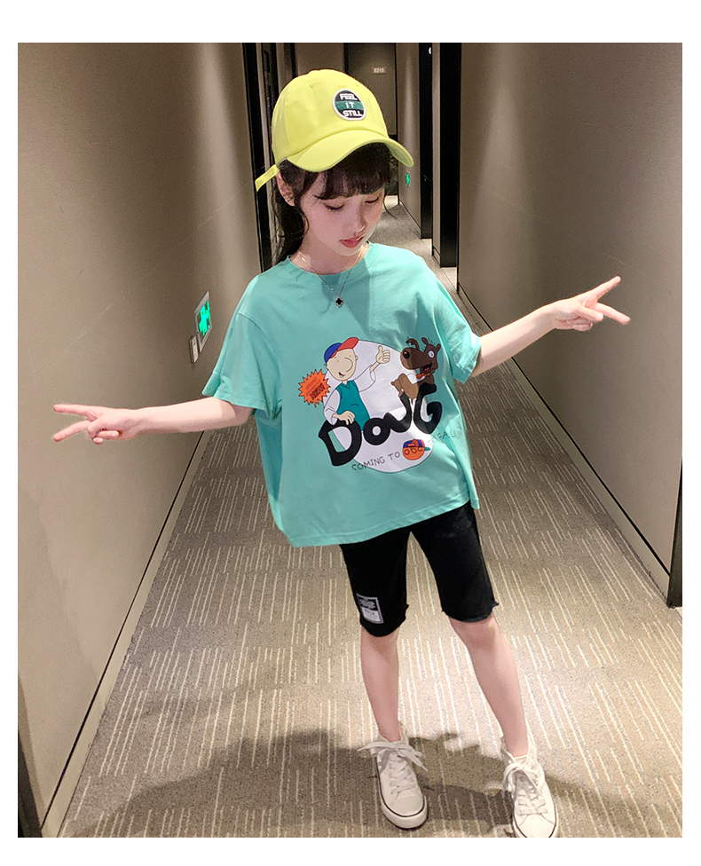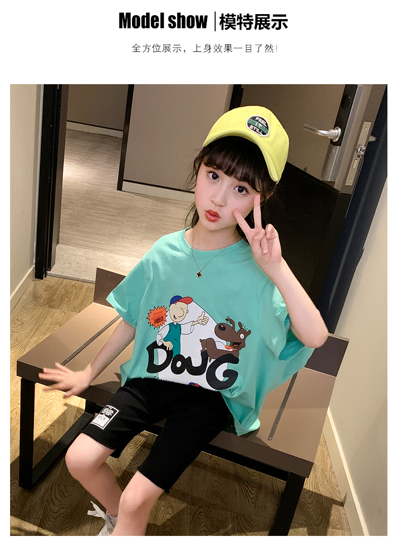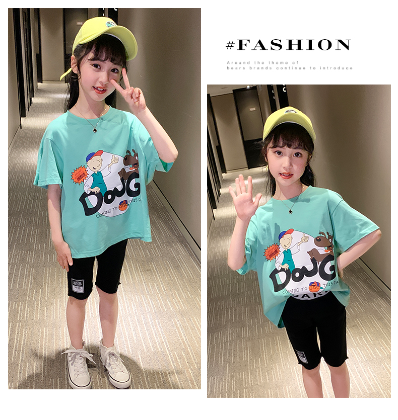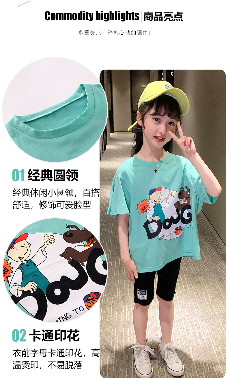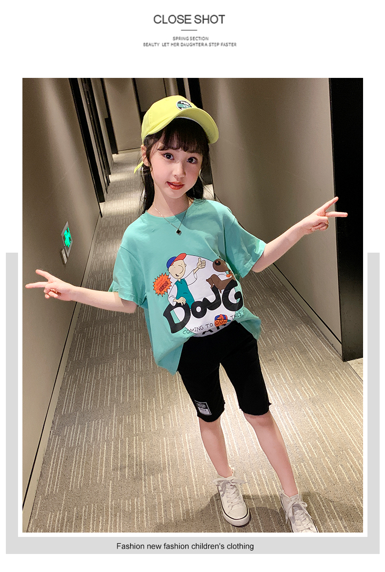 浪莎女童夏裝2021新款網紅洋氣兒童中大童短袖T恤女孩童裝夏季潮