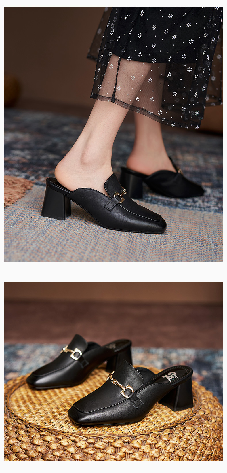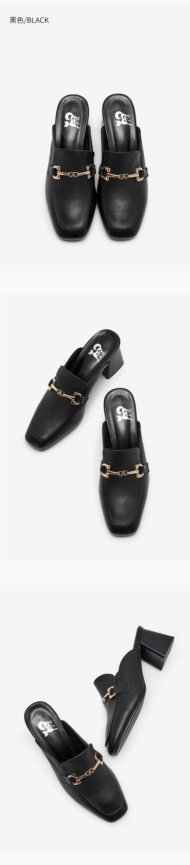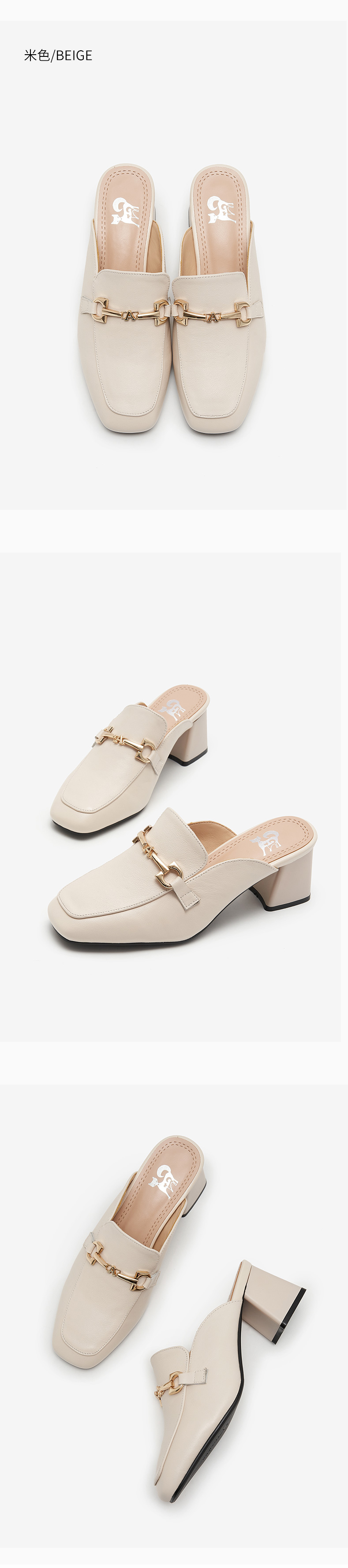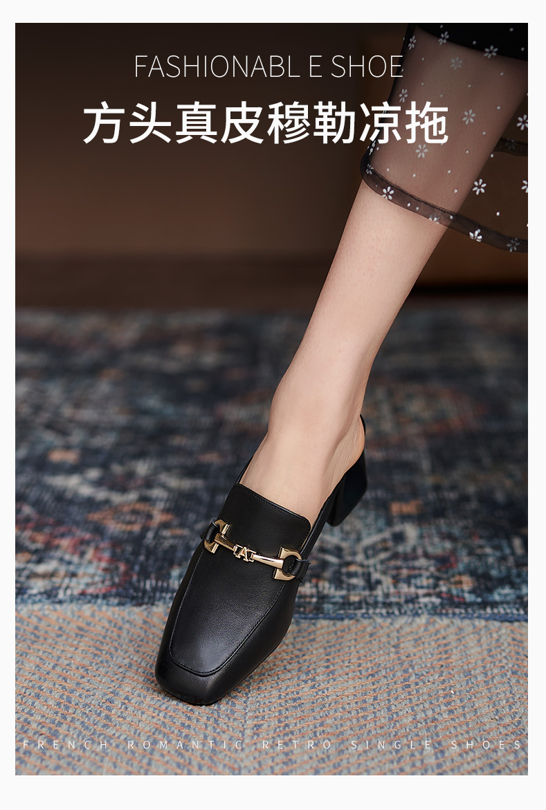 包頭半拖鞋女2021年一腳蹬女鞋夏時尚穆勒鞋真皮高跟方頭外穿涼拖