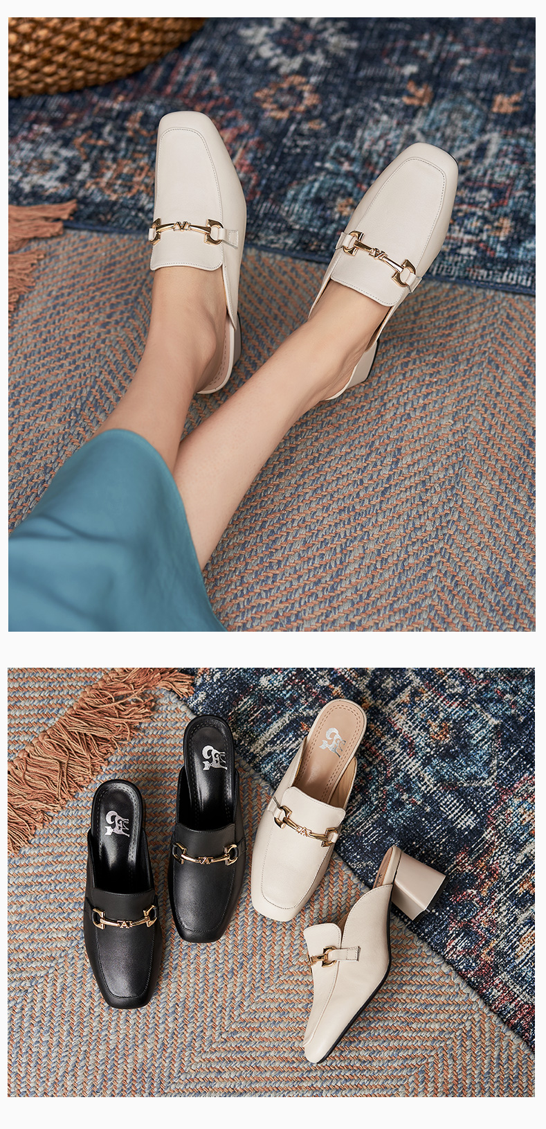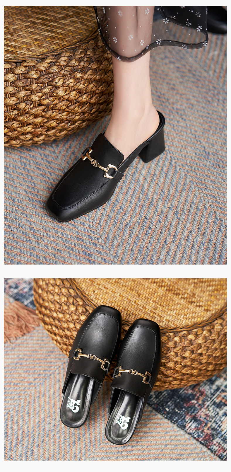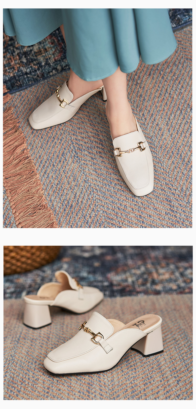 包頭半拖鞋女2021年一腳蹬女鞋夏時尚穆勒鞋真皮高跟方頭外穿涼拖