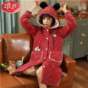 浪莎三層加厚睡裙女冬季中長款睡衣保暖夾棉睡袍珊瑚絨少女家居服