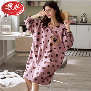 浪莎秋季純棉睡裙韓版可愛清新甜美寬松時(shí)尚睡裙女舒適長袖可外穿