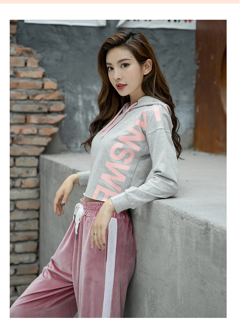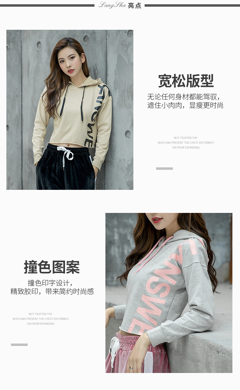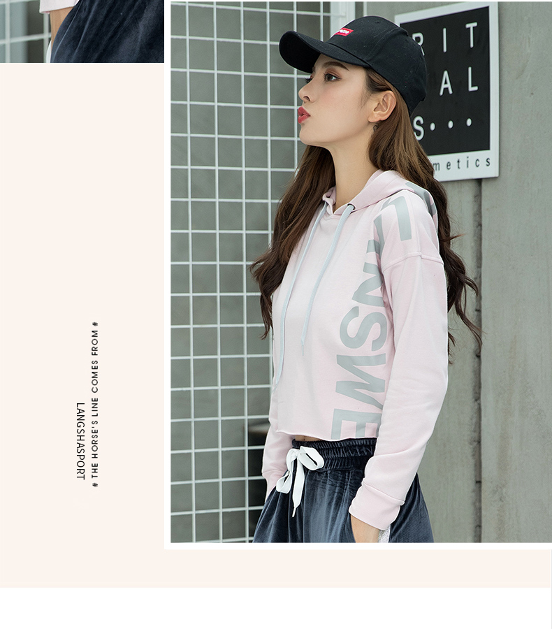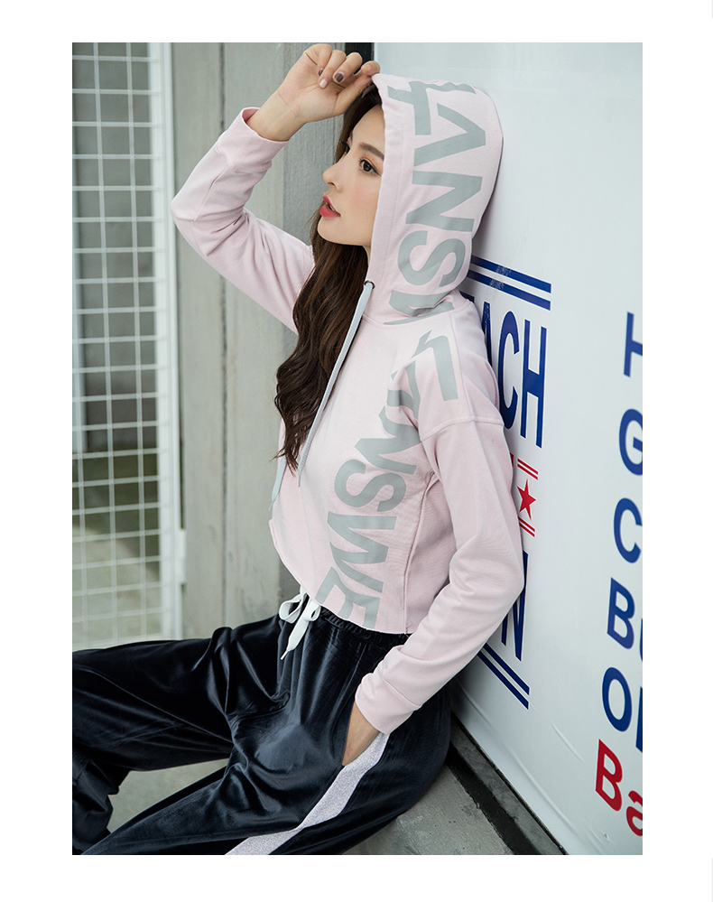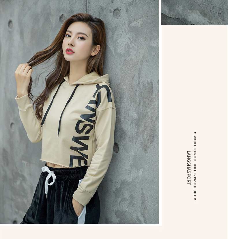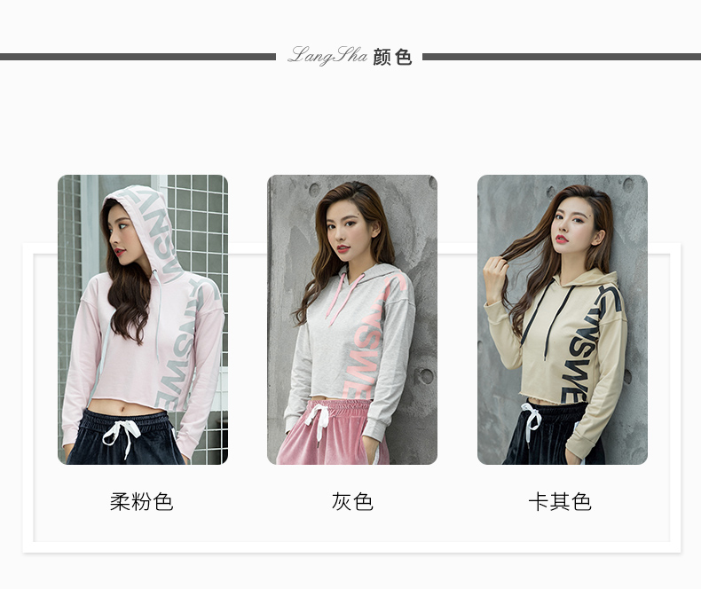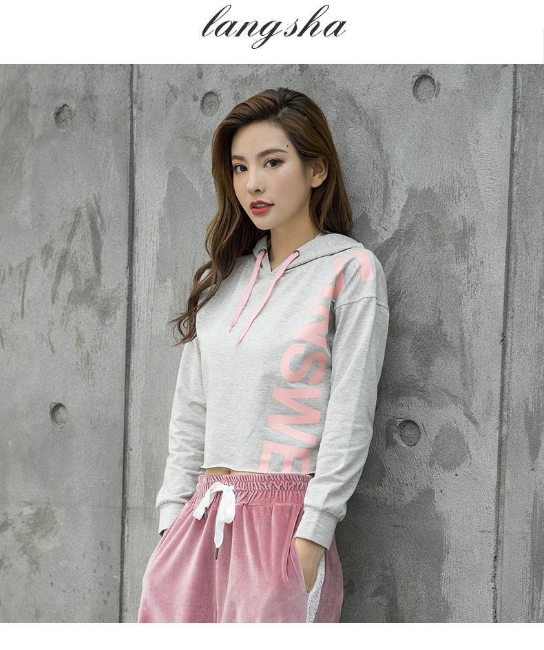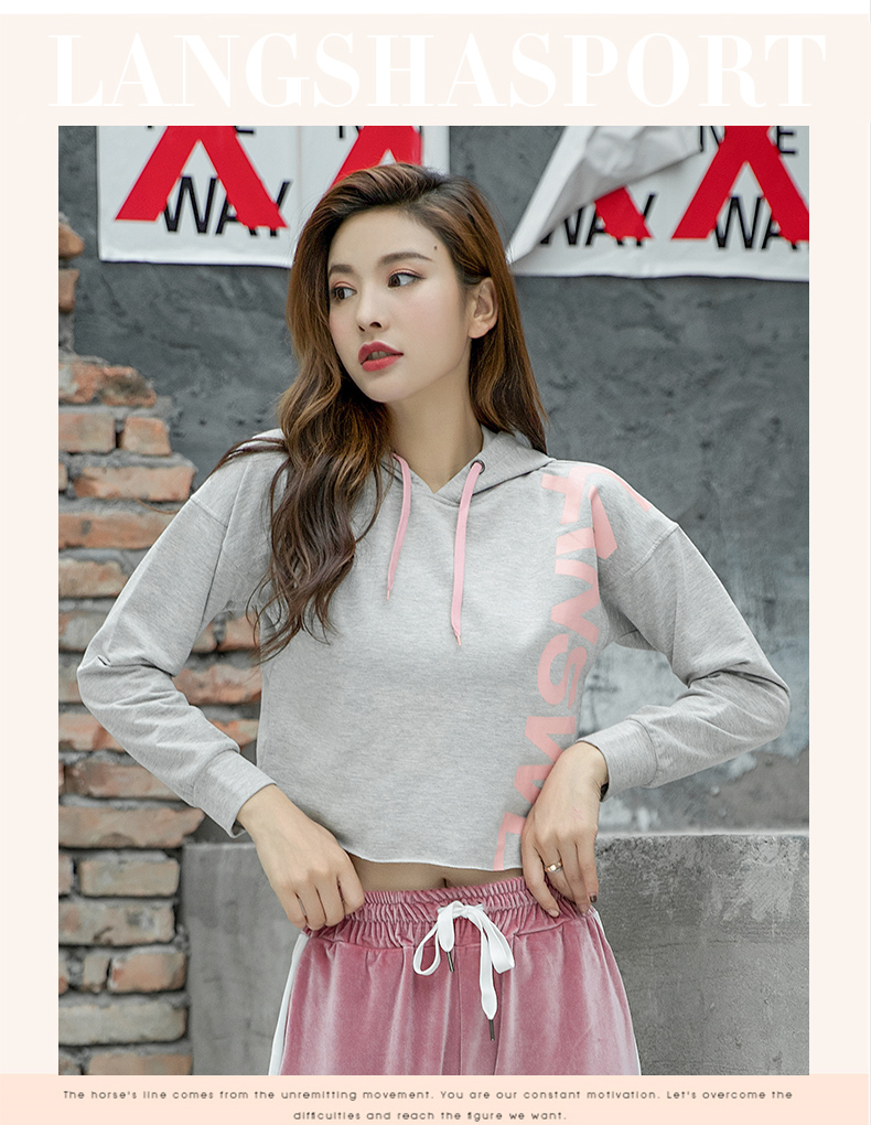 特價浪莎運動衛衣女寬松連帽休閑純棉套頭衫春秋瑜伽服健身長袖