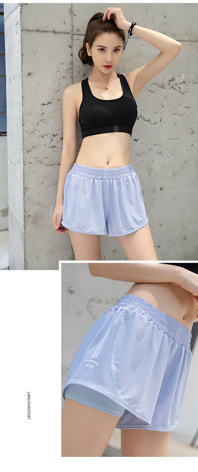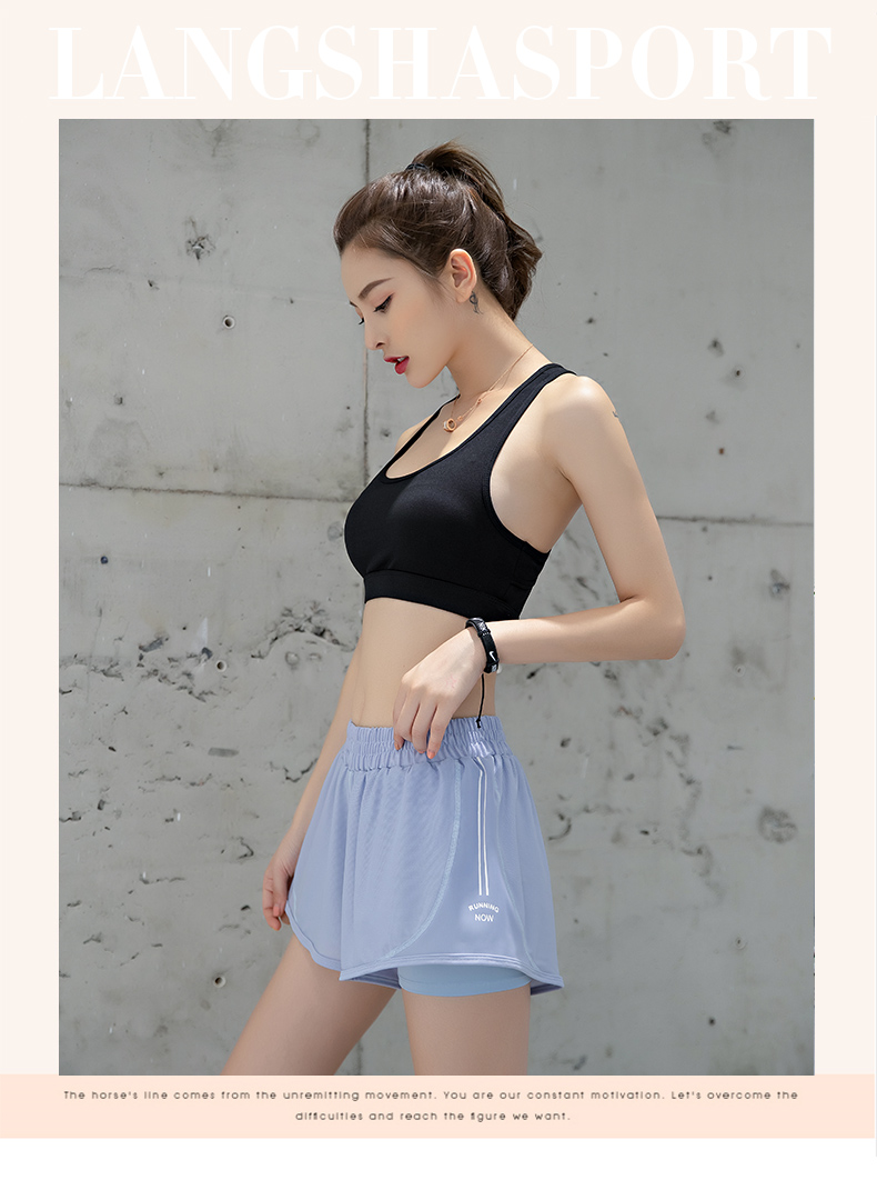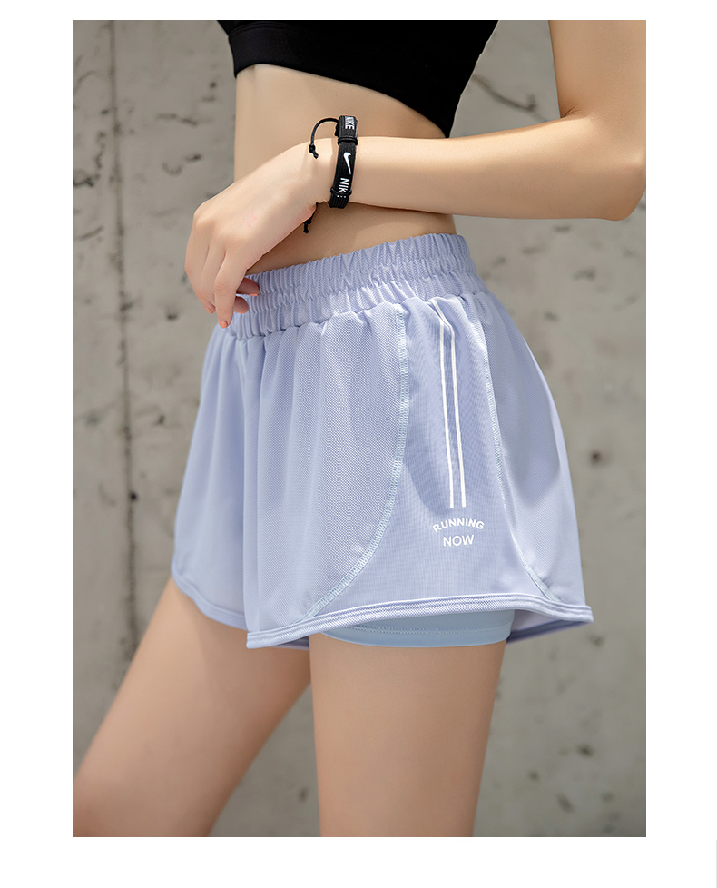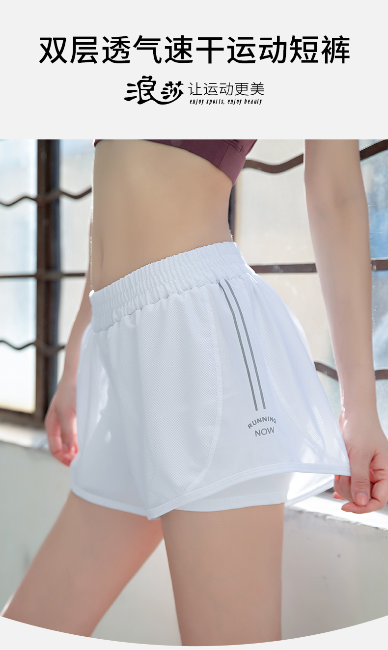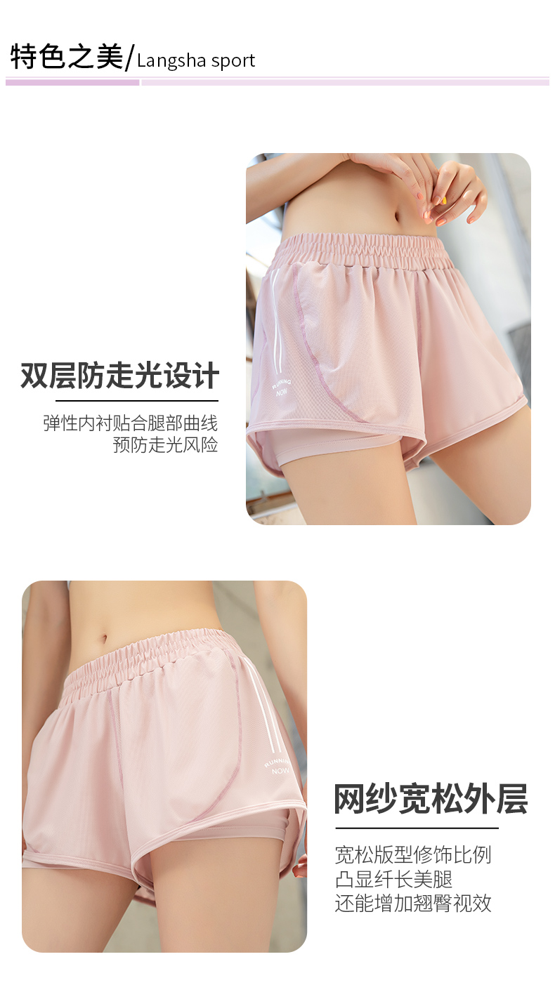 浪莎運動短褲女薄款寬松速干翹臀跑步訓練網(wǎng)紗瑜伽防走光健身短褲