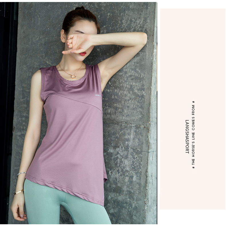 浪莎運動背心女寬松外穿瑜伽上衣無袖速干T恤跑步時尚長健身罩衫