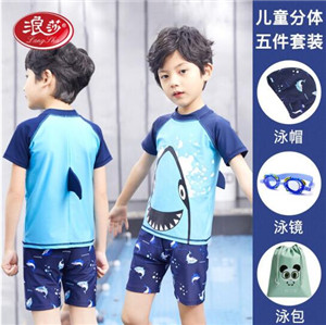 浪莎(LangSha)兒童泳衣男童分體寶寶中大童小孩嬰幼兒學(xué)生游泳褲泳裝套裝 藍鯊魚五件套 4XL