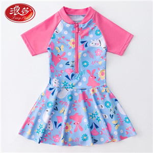 浪莎(langsha)兒童泳衣女童中大童連體游泳衣寶寶小公主新款女孩裙式泳裝戲水裝備 粉邊藍底 M碼(建議90-100cm)