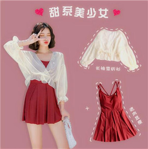 浪莎品牌21泳衣女新款性感遮肚顯瘦連體大碼保守韓國ins溫泉泡澡服泳裝 酒紅色 M(建議80-100斤)