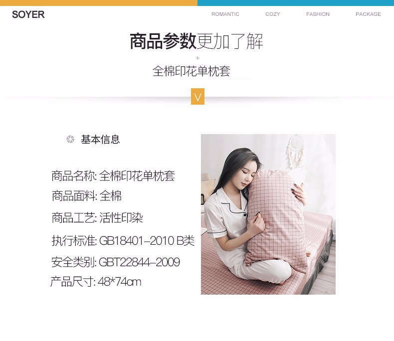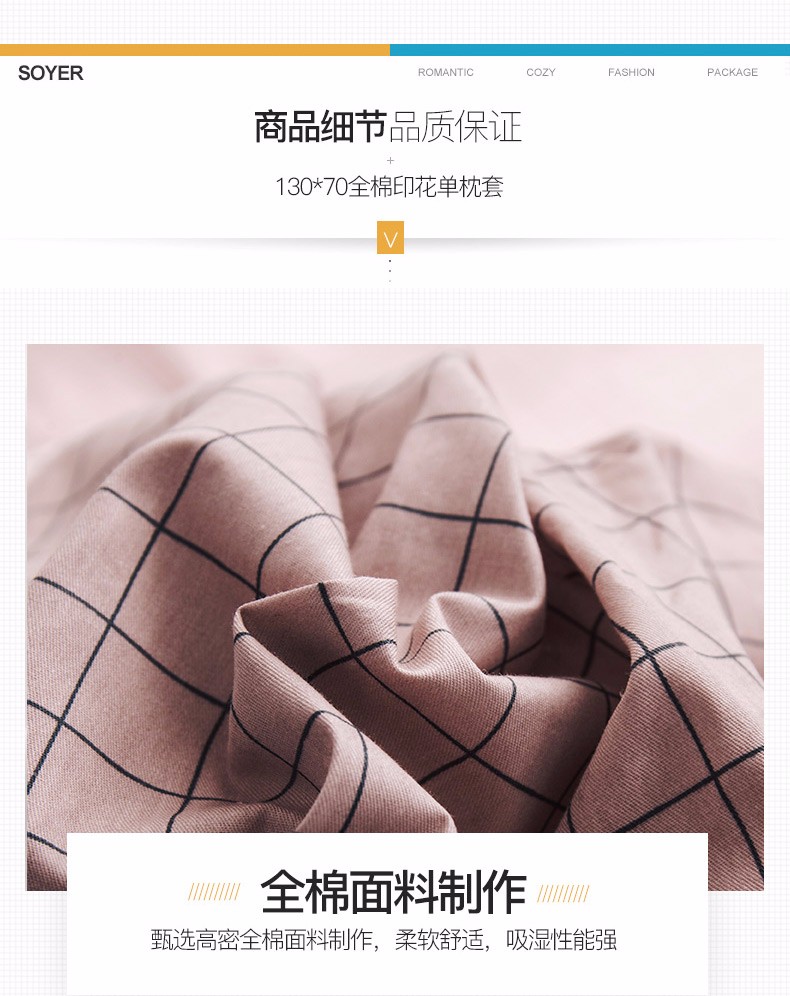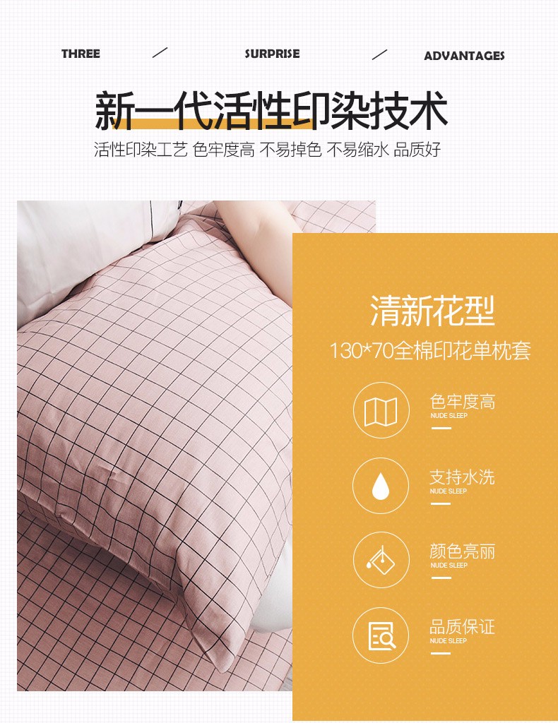 浪莎全棉枕套一對裝純棉印花枕頭套單人學生宿舍枕芯套48x74cm