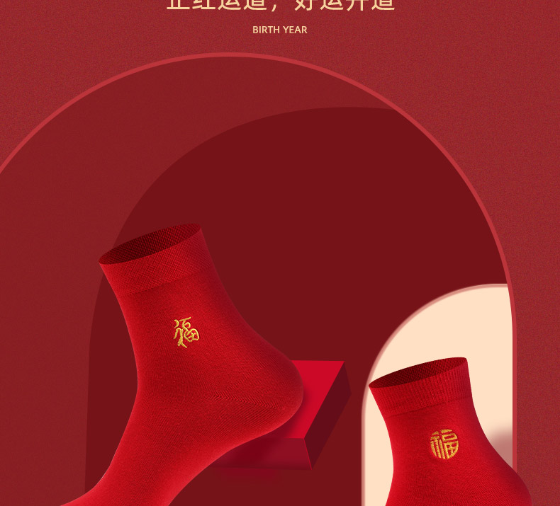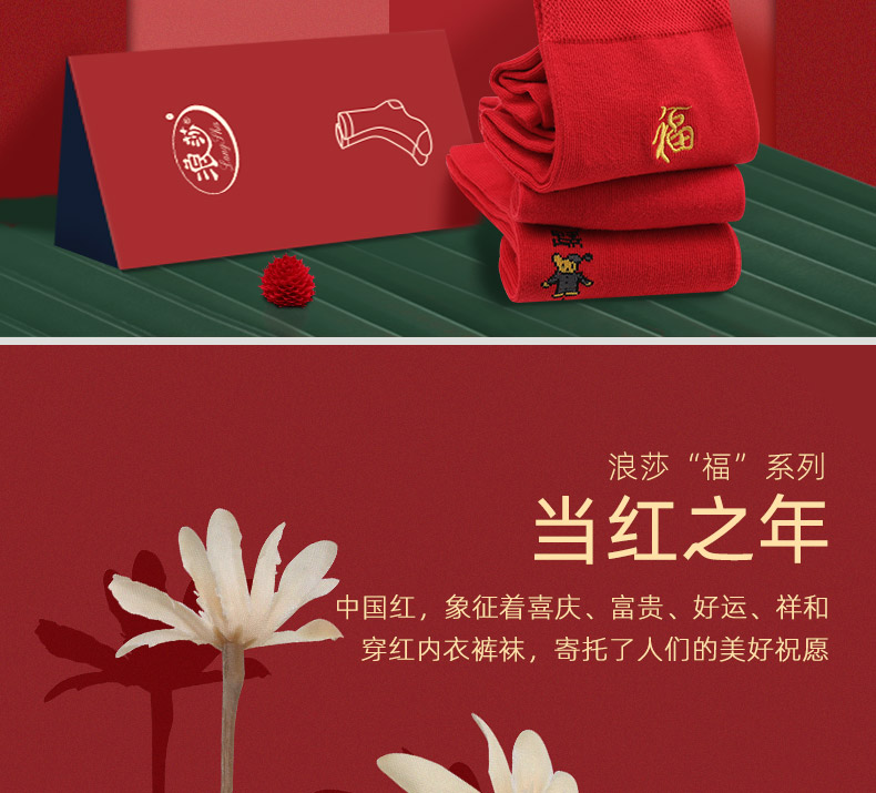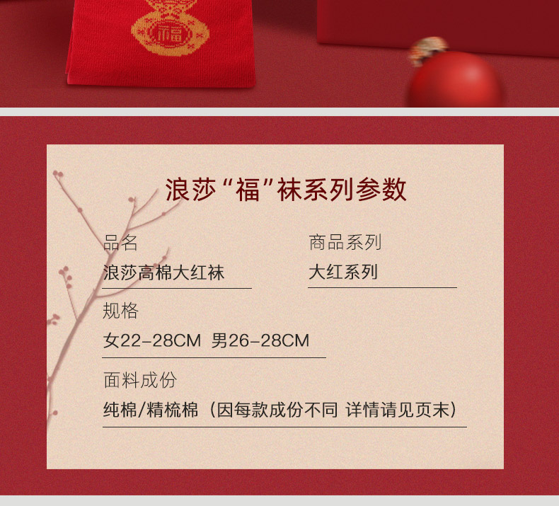 浪莎紅襪子女男士本命年純棉踩小人屬牛年結婚情侶全棉大紅色棉襪